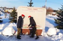 Юнармейцы отряда "Юго-Восток" имени В. Синицына приняли участие в возложении цветов к Обелиску в ЖМ "Мирный". Руководитель отряда Азизов Ф. С.