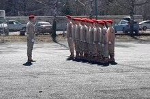 Сегодня ученики нашей школы приняли участие в районном этапе городского конкурса смотра строя и песни и заняли II место. (Руководитель - Азизов Ф.С.)