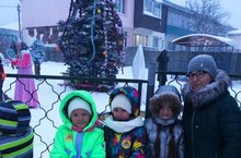 26 декабря зажглись новогодние огоньки на елке в ЖМ "Петровский". Учащиеся, проживающие в микрорайоне, пришли посмотреть на сказочных героев.