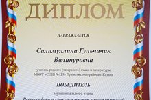 Поздравляем с победой в очном этапа IV Всероссийской конференции-конкурсе имени Льва Толстого Сибгатуллину Аделю, ученицу 11 класса в секции «Германские и романские языки в прошлом и настоящем». Учитель Зиганшина А.Н.