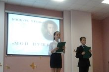 9 ноября в актовом зале школы прошёл конкурс чтецов «Мой Пушкин» среди учащихся 5 – 8-х классов. Ребята читали любимые стихи великого русского поэта. Зав.библиотекой Кузенкова Л.Н. подготовила компьютерную презентацию, на слайдах которой был представлен каждый участник, а также исполняемое им произведение. Победителями стали Заднепровская Дарья (5 б класс), Галимова Гульназ (8 в класс). Интересно отметить, что ученицы разных классов прочитали мастерски одно и то же стихотворение А.С. Пушкина – «Признание». Призёрами стали ученицы 7 а и 5 б классов. Все участники были награждены Дипломами и небольшими подарками, победители и призёры – Дипломами и книгами. Ответственные: зам.директора по УР Шарипова Д.Ф., зав.библиотекой Кузенкова Л.Н., учитель литературы Кулакова А.Г.