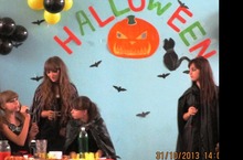 Сегодня в гостях у школьников побывало 5 ведьмочек, 2 черные кошки и мумия. Для учащихся были организованы конкурсы на лучшие "страшные" костюмы, плакаты и тыквы! Театр моды "Блик" ДПЦ "Молодость" показал новую коллекцию.