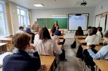 В рамках занятий профориентационного курса «Россия-мои горизонты» сегодня прошла встреча учеников 9-х классов со специалистом школы «Умскул» Бадртдиновой Лианой.