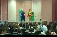 10.12.12г. в преддверии зимних школьных каникул учащимся 1-4 классов был показан спектакль "Красная шапочка, заяц, волк и Правила Дорожного Движения".