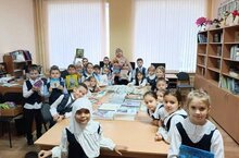 Заведущая библиотекой Камалова М.Д. провела первое в этом году «Посвящение в читатели» для наших самых юных учеников — 1В класса.
