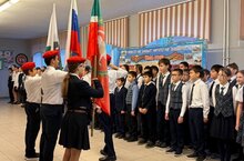 Школьная учебная неделя началась с традиционного выноса флагов Российской Федерации и Республики Татарстан.