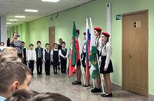 Школьная учебная неделя началась с традиционного выноса флагов Российской Федерации и Республики Татарстан.