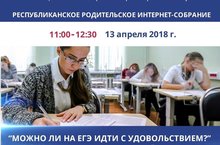 13 апреля 2018 г состоится очередное Республиканское интернет-собрание на тему "Можно ли на ЕГЭ идти с удовольствием?" (об эффективных методиках подготовки детей и подростков к аттестации знаний). Трансляция на сайте киу.рф