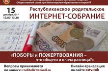 15 декабря в 12.00 начнётся второе заседание Республиканское родительское интернет-собрание, посвящённое вопросам противодействия проявлениям коррупции в системе образования. Тема заседания: «Поборы и пожертвования – что общего и в чём разница?».