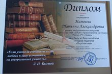 Учитель изобразительного искусства нашей школы Матвеева Татьяна Александровна награждена Дипломом 1 степени за победу во Всероссийском конкурсе педагогов «Перспектива». Поздравляем!