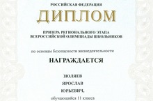 Поздравляем ученика 11 Б класса Зюляева Ярослава, призёра Республиканской олимпиады по ОБЖ. Желаем успехов в учёбе и новых побед!