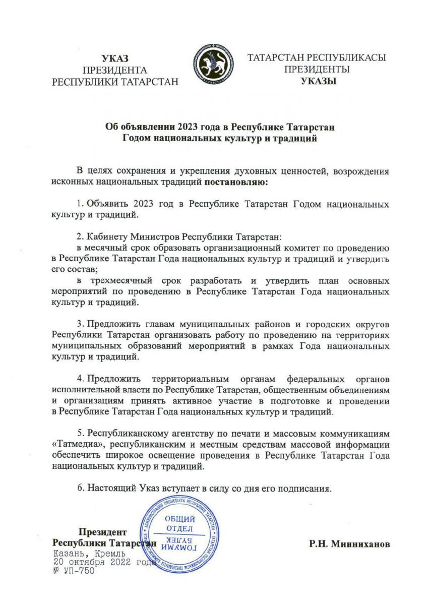 2023 -год в Татарстане объявлен Годом национальных культур и традиций