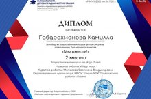 Габдрахманова Камилла, участвовала во всероссийском детском конкурсе рисунков, посвященного дню народного единства «Мы вместе» и заняла 2 место. Поздравляем! Так держать!
