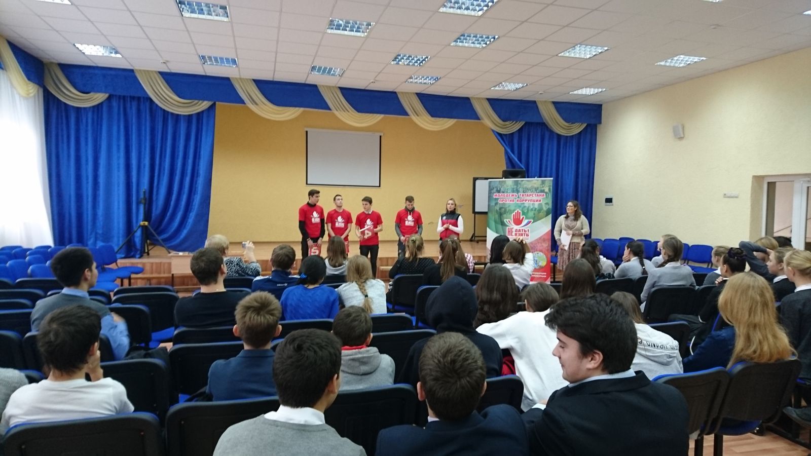 Опубликовано: 28.10.201628 октября в актовом зале школы прошел квест "Молодежь Татарстана против коррупции", который провела Лига студентов для учащихся 7-8 классов. Ребята активно участвовали в конкурсах. Победители получили сладкие угощения.
