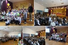 В понедельник на линейку был приглашен председатель правления Регионального благотворительного фонда им. Анжелы Вавиловой. На линейке были подведены итоги недели Добра, деньги, вырученные с благотворительной ярмарки, были переданы В В. Вавилову для детей хосписа.