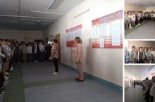 Утро понедельника в школе началось с поднятия флага Российской Федерации и Республики Татарстан с исполнением гимна, продолжением линейки стали классные часы "Разговоры о важном"