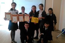 13 апреля активистки нашей школы Бокоусова Катя и Антонова Катя приняли участие в районной учебе актива, которая проходила в ЦВР Приволжского района в форме игры АБВГДейка и посвящена нашему городу и Дню Победы. Дети быстро подружились и в заключение спели знаменитую "Катюшу", а потом было награждение. Наша школа без грамот не осталась ! -