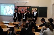 Сегодня, ученики 8 "В" класса провели классный час на тему «Для любимой мамы».Ученики предложили варианты поздравления для своих мам. Это были стихи, песни под гитару и сольные выступления.Самостоятельно была подготовлена презентация, посвященная мамам, в которую были вставлены фотографии мам и оригинальные поздравления для них. Классный час был очень добрым, семейным. Молодцы, ребята! -