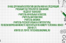 В наш дружный коллектив школы №68 на следующий учебный год требуются вакансии: