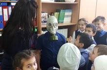 В рамках месячника Гражданской обороны среди учащихся 9 классов состоялись соревнования,в ходе которых юноши надевали средства индивидуальной защиты.