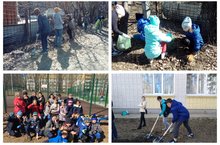 Вооружившись необходимым инвентарем, ребята и педагоги с удовольствием приводили в порядок школьную территорию: собирали мусор, сгребали прошлогоднюю листву и траву.