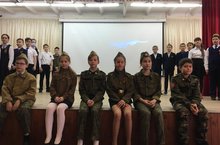 В актовом зале школы было проведено торжественное мероприятие, посвящённое присвоению звания курсанта и вручения погон юнармейцам. Не случайно это мероприятие посвящено приближающемуся празднику. Мы хотим, чтобы каждый свято верил в своё Отечество, знал и чтил историю своего народа, гордился подвигами наших дедов!