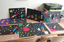 Сегодня в школе были проведены мероприятия, посвящённые празднику "День космонавтики". Ученики 1-7 классов подготовили тематические рисунки на тему "Навстречу звёздам!", среди 1-4 классов были организованы классные часы "108 минут", а также творческий конкурс рисунков и поделок "Мастерская Гагарина".