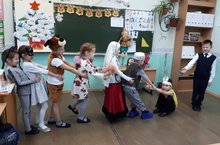 В 1 "Б" классе ребята подготовили новогодний спектакль "Репка".Это лёгкий, озорной, остроумный спектакль по мотивам народной сказки про Репку, которую всей семьёй вытаскивали из земли.