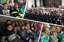 Сегодня лагерь посетил инспектор ГИБДД и ещё раз рассказал ребятам о безопасности на дороге. Во второй половине дня в актовом зале школы для всех желающих был показан мультфильм "Плюшевый монстр".