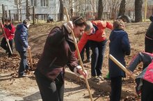 Учащиеся и персонал школы принял участие в уборке пришкольной территории и посадке деревьев.