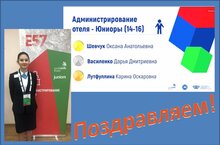 Поздравляем Дарью Василенко (9М класс) занявшую второе место в компетенции «Администрирование отеля» Юниоры (14-16 лет)! Желаем дальнейших успехов!