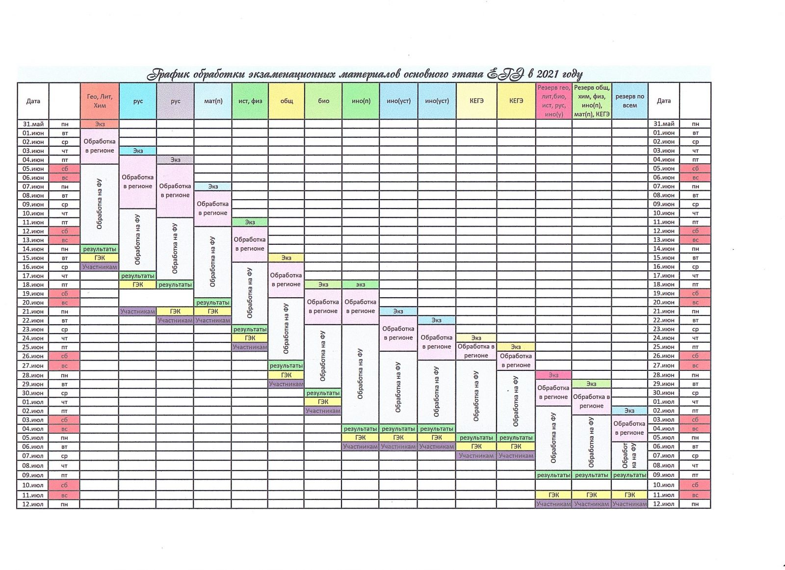 График обработки ЕГЭ 2021 11.06.2021
