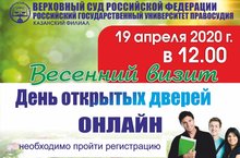 В связи со сложившейся эпидемиологической ситуацией День открытых дверей в Казанском филиале Российского государственного университета правосудия состоится 19 АПРЕЛЯ 2020 г. в 12:00 в режиме ОНЛАЙН.