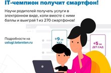 Конкурс "IT-чемпион", в рамках которого татарстанские школьники смогут приобщить родителей к активному пользованию сервисами на портале госуслуг и получить за это смартфон, стартовал в Татарстане, сообщает министерство информатизации и связи республики.