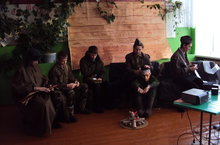 Открытый классный час "Великая Отечественная война в поэзии". 29.01.2015 29 января классный руководитель 9-10 классов Башева О.И. показала открытое мероприятие классным руководителям нашей школы на тему: «Великая Отечественная война в поэзии». Звуки бомбежки, звуки боя, импровизированная землянка, учащиеся, одетые в солдатскую форму, проникновенное чтение стихов К. Симонова, Ю.Друниной, Б.Окуджавы, Э.Асадова – такова была атмосфера классного часа. Итог: учащиеся приклеивают бумажных голубей со словами: «Я голосую за мир, чтобы….»