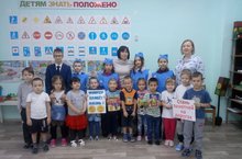 Акция «Засветись! Стань заметней на дороге!», направленная на пропаганду культа безопасного поведения на дороге и на обеспечение участников дорожного движения средствами пассивной безопасности. Учащиеся 5 класса с ребятами дошкольного учреждения .