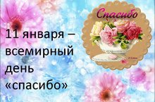 11 января - Международный день «спасибо» - одна из самых «вежливых» дат в году. Мы каждый день говорим друг другу «спасибо», поэтому очень важно помнить , что истинная благодарность лишь та, которая идёт только от чистого сердца!Поблагодарите сегодня тех, кто рядом с Вами, всех кого любите и цените. И помните: «спасибо» – это слово – светлячок, так согрейте же сегодня близких вам людей!Весёлый праздник – День СПАСИБО!Всех благодарностей не счесть,От добрых солнечных улыбокЗабились в угол зло и месть.СПАСИБО! пусть звучит повсюду,На всей Планете добрый знак,СПАСИБО – маленькое чудо,Заряд тепла в твоих руках!Произнеси, как заклинанье.И ты почувствуешь, как вдруг,Добра и счастья пожеланье,Тебе подарит новый друг! -