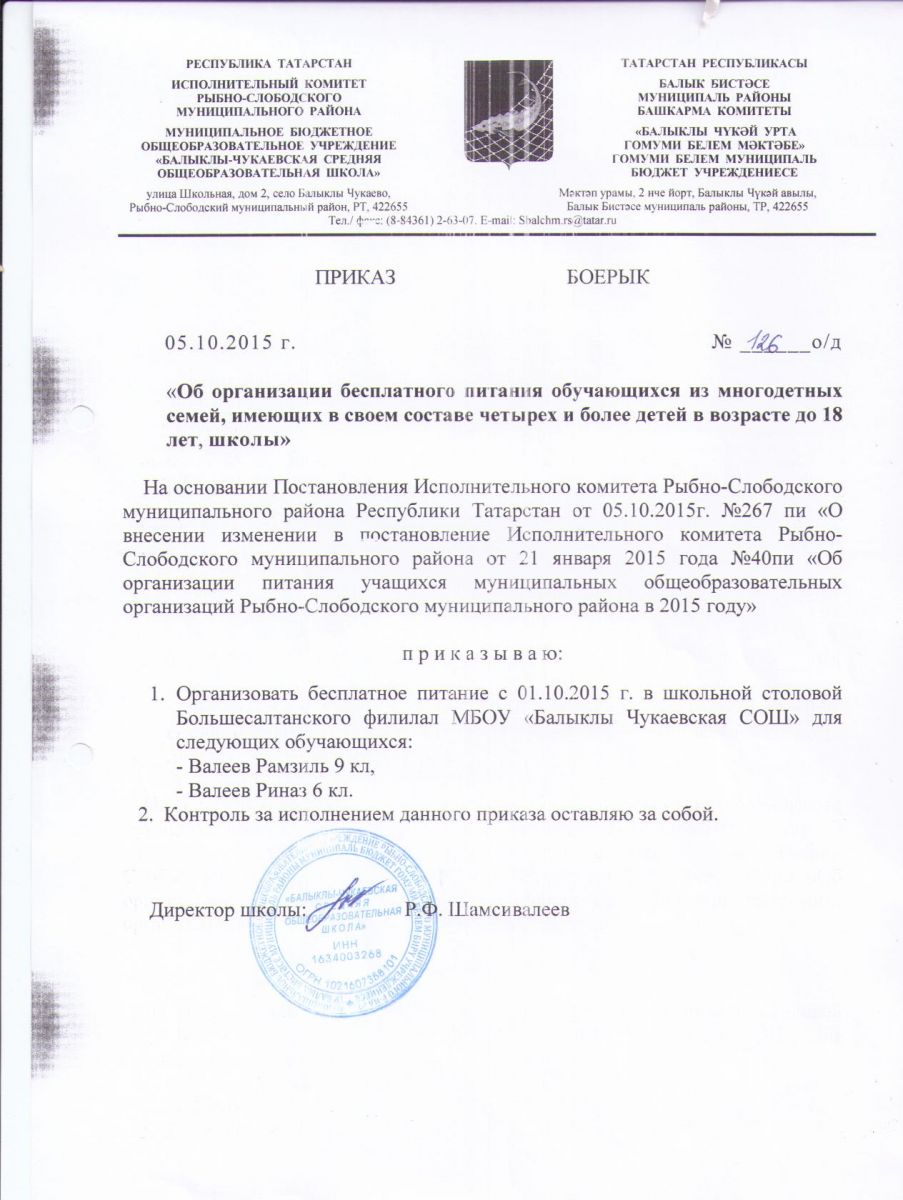 Муниципальное бюджетное общеобразовательное учреждение «Балыклы-Чукаевская средняя общеобразовательная школа» Рыбно-Слободского муниципального района РТ/Татарстан Республикасы Балык Бистәсе муниципаль районы муниципаль бюджет гомуми белем учреждениесе "Балыклы-Чүкәй урта гомуми белем мәктәбе"