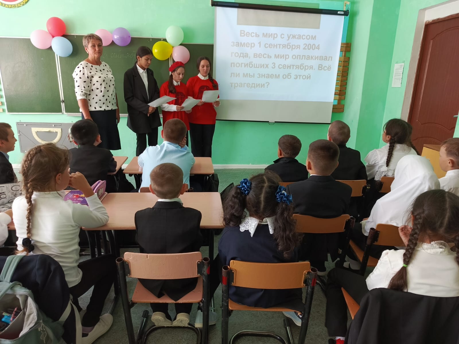 Сегодня 3 сентября учащиеся МБОУ «Больше-Машляковская СОШ узнали, какая ужасная трагедия случилась в Северной Осетии в Беслане 1 сентября 2004 года. От позорных пуль террористов в спину невинные дети погибли в праздничный день в священном месте – в школе. Сейчас эту трагедию помнит и