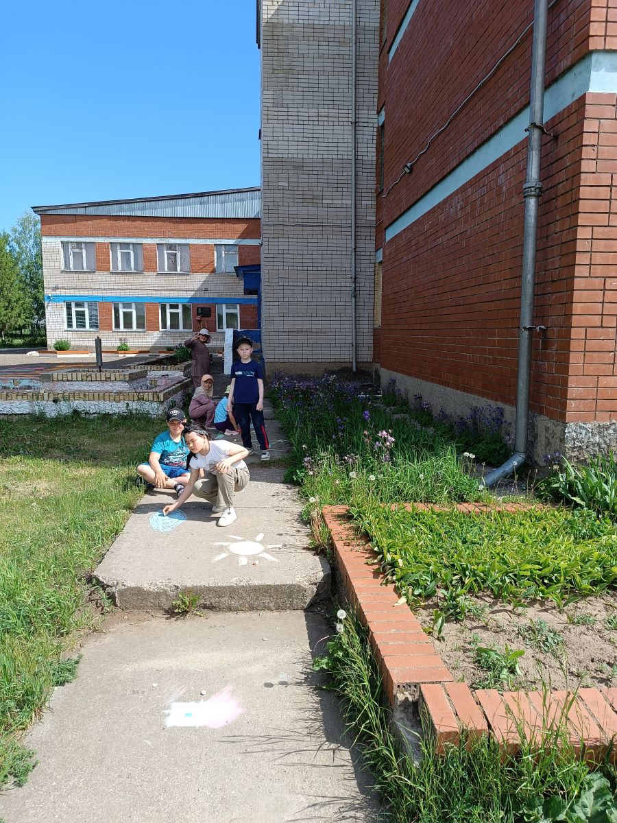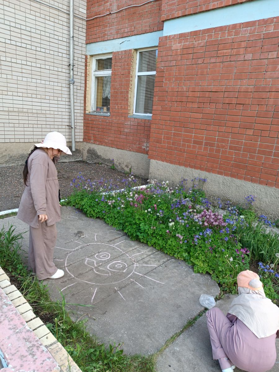 Лагерь. Асфальтта рәсемнәр ясау. Рисунки на асфальте