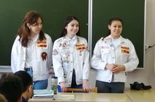 12 апрель - Космонавтика көнне Ю.Гагарин исемендәге дружинабызның 1 нче сыйныф укучыларын "Эзтабарлар" сафларына кабул иттек. Алар чын эзтабар булырга һәм эзтабар кагыйдәләрен төгәл үтәргә сүз бирделәр.