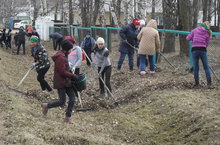 Укучылар мәктәп яны территориясен җыештыру өмәсендә катнаштылар.