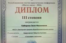 Учащиеся нашей школы (Бакирова Л.-11 кл., Сабирова З.-9 кл., Хайриев А.-9 кл.) успешно выступили на конференции. Сабирова З. на секции «Экология» (руководитель — учитель биологии Бадрутдинов Г. А.), Хайриев А. на секции «Информационные технологии, программирование» (руководитель — учительница информатики Тухватуллина Л. М.) заняли призовое 3-место.