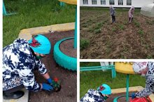 Во время самоизоляции в пришкольном участке начались работы.Все меры предосторожности соблюдены.Учителя,тех.персоналы работали в масках и в расстоянии 2,5м