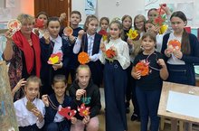 Воспитанники отделения изобразительного искусства ДШИ им.Ф.Ахмадиева вместе с преподавателем Ф.Х. Якуповой изготовили медали "Золотой возраст" и затем вручили их на улицах Рыбной Слободы.