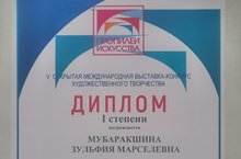 Завершилась V Открытая Международная выставка-конкурс художественного творчества "Пропилеи искусства" организованная Министерством культуры Российской Федерации, Казанским Государственным институтом культуры, Союзом дизайнеров России. По итогам конкурса в номинации "Декоративно-прикладное искусство", в профессиональной категории "Школьник" Дипломом I степени награждена Мубаракшина Зульфия, Дипломом II степени - Мингазова Дина, Дипломами III степени - Замалеев Айбулат, Садиков Айзат, Галимова Аделя, Дипломом участника - Сафаров Илюс (руководитель Загидуллина Л.Г.). Отдельным Дипломом награждена преподаватель Якупова Ф.Х. Поздравляем наших воспитанников с замечательным результатом!
