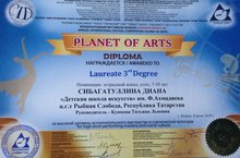 На днях в Казани прошел Международный фестиваль-конкурс "Планета искусств", организованный Международным фестивальным комитетом "Жизнь городов", под патронажем Всемирной организацией ЮНЕСКО. В номинации "Эстрадный вокал. Соло. 7-10 лет" , Лауреатом III степени стала воспитанница нашей школы Сибагатуллина Диана (педагог Купцова Т.Л.) Поздравляем!!!