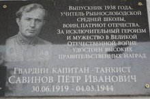 19 июля в Рыбно-Слободской гимназии № 1 состоялось мероприятие, посвященное 100-летию выпускника школы, участника Великой Отечественной войны Петра Ивановича Савинова . Среди приглашенных гостей были многочисленные родственники героя, во главе с племянником Владимиром Андреевичем. Почетными гостями были Глава Рыбно-Слободского муниципального района РТ - Тазутдинов И.Р.; заместитель председателя комиссии Общественной палаты РТ по правовым вопросам, член правления совета ветеранов УФСБ РФ по РТ - Шакирзянов Рафаэль Мазитович; заслуженный юрист Татарстана, экс-прокурор РТ Амиров Кафиль Фахразеевич; экс-заместитель министра МВД, экс-начальник следственного управления, заслуженный юрист РТ, РФ - Митюшкин Юрий Иванович. Учащинся гимназии провели экскурсию по школьному военно-патриотическому музею имени П. И. Савинова. Дальше встреча гостей, Юнармейцев и местного Совета Офицеров запаса продолжилась за круглым столом. Мероприятие завершилосб возложением цветов на Аллее героев и минутой молчания.