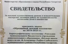Сегодня, на расширенном совещании при Главе района, директору нашей школы была объявлена благодарность от руководства района за победу в республиканском конкурсе на присвоение звания "Образцовый детский коллектив", среди объединений, коллективов детского творчества Республики Татарстан. В числе лучших коллективов стал наш хореографический коллектив "Рапсодия".
