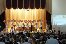 Сегодня в зале районного Дома культуры состоялось традиционное ежегодное совещание работников образования. Перед пленарным заседанием на площади перед зданием РДК состоялость приветствие участников совещания коллективом "Рапсодия". Они исполнили один из красивейших танцев, который стал визитной карточкой коллектива. Глава района, начальник отдела образования и представитель министерства образования и науки РТ обошли выставку достижений общеобразовательных школ, дошкольных учреждений и учреждений дополнительного образования. После окончания пленарного заседания состоялось награждение лучших педагогов и учителей.